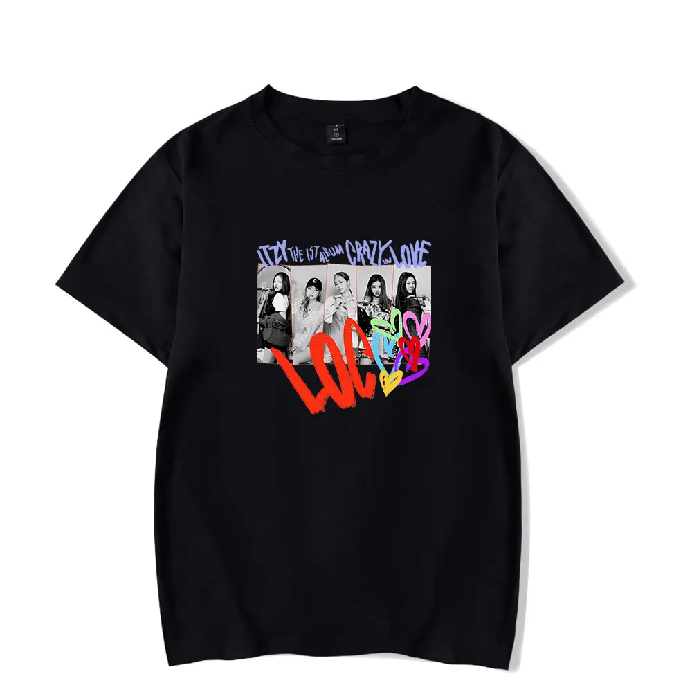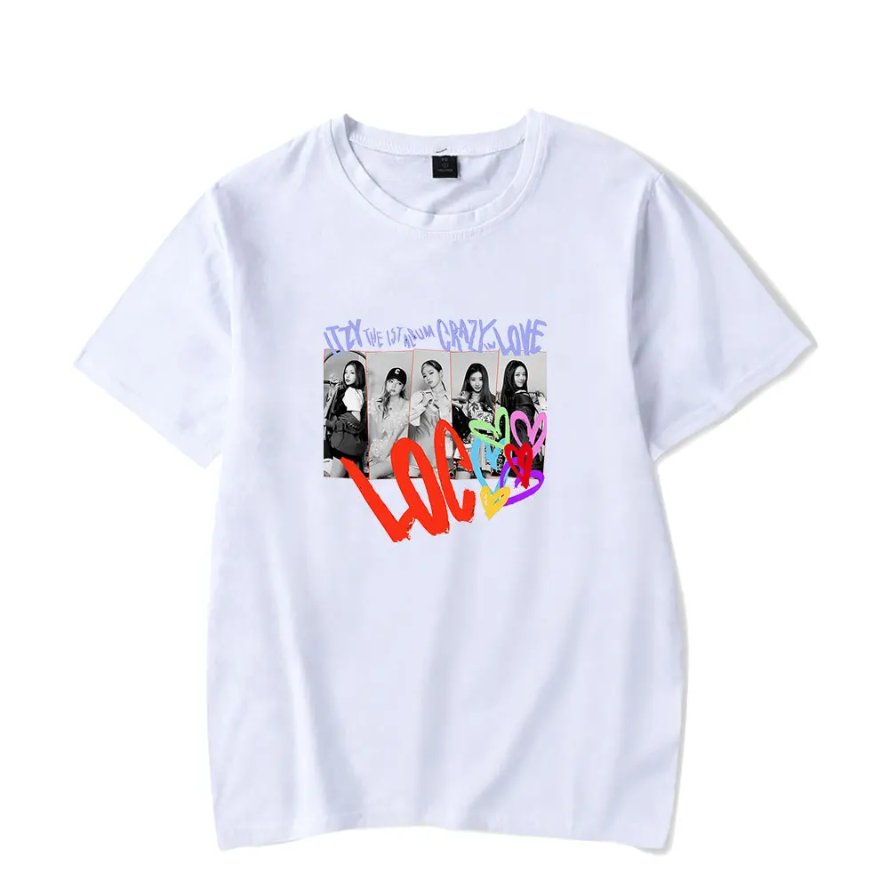 Футболка с круглым вырезом ITZY, одежда из 100% полиэстера Харадзюку, косплей футболка ITZY LOCO С коротким рукавом и круглым вырезом для нового альбома Kpop 2021