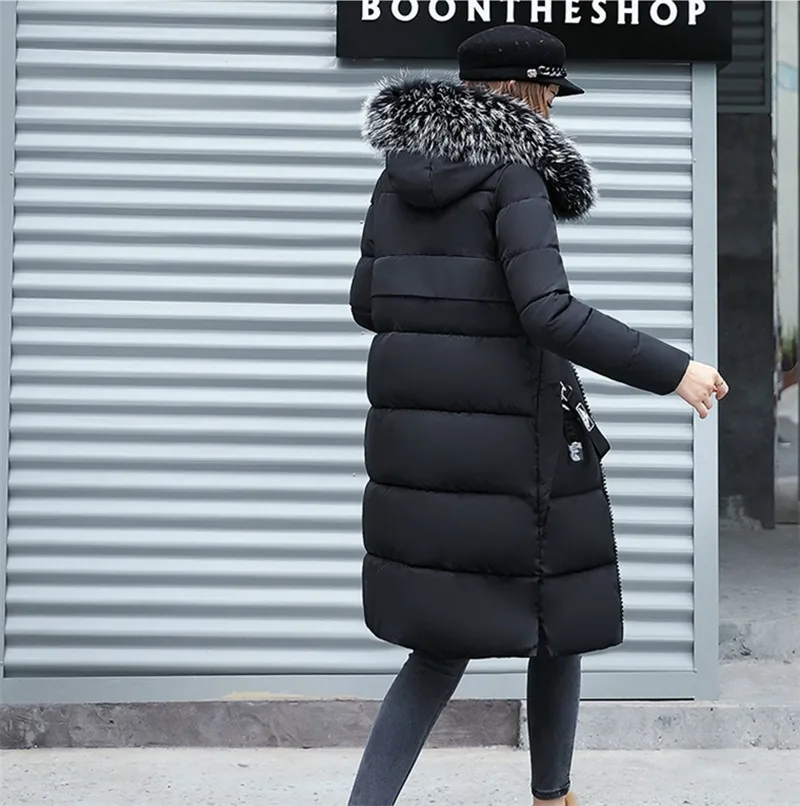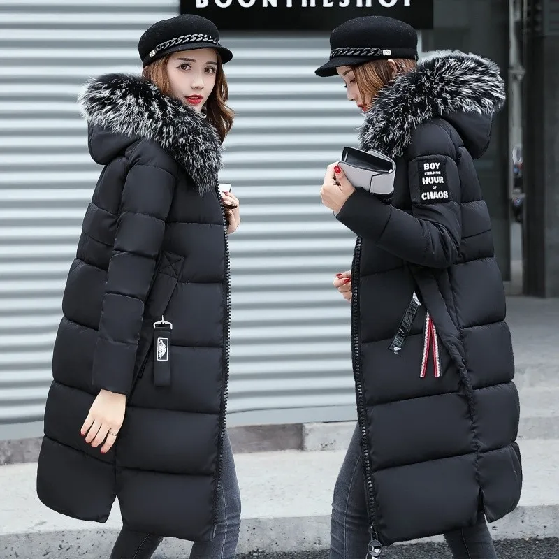 Женская теплая толстая верхняя одежда, Женская длинная парка на пуху из хлопка, зимняя куртка 2021, Новая повседневная с меховым воротником и капюшоном