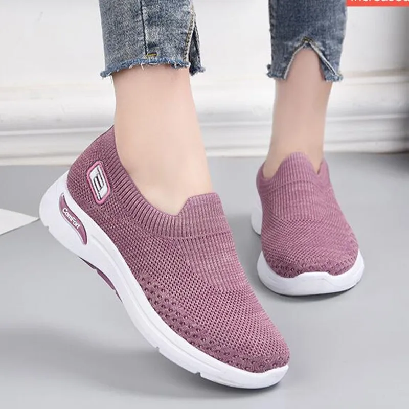 Кроссовки-носки женские с мягкой подошвой, Вулканизированная подошва, без шнуровки, дышащие, лоферы, прогулочная обувь на плоской подошве, повседневные