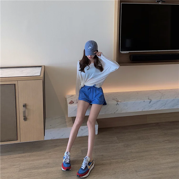 Модные штаны для женщин, новинка 2021, домашние повседневные спортивные Популярные штаны с высокой талией, Женские однотонные прямые свободные шорты, женская верхняя одежда, шорты