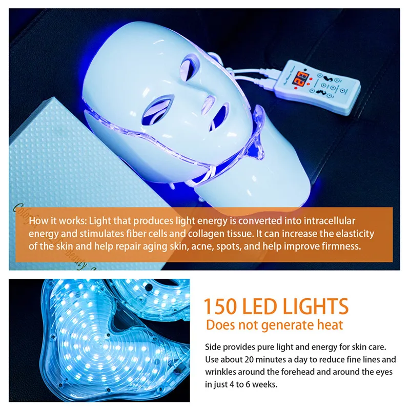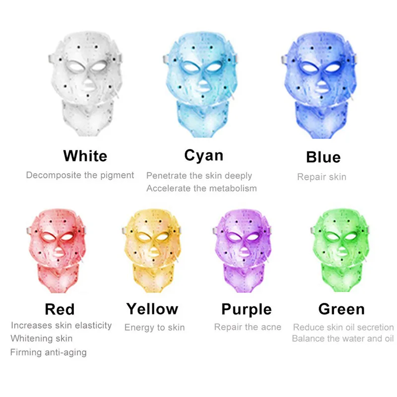 Маска светодиодсветильник для лица, 7 цветов, против морщин и прыщей