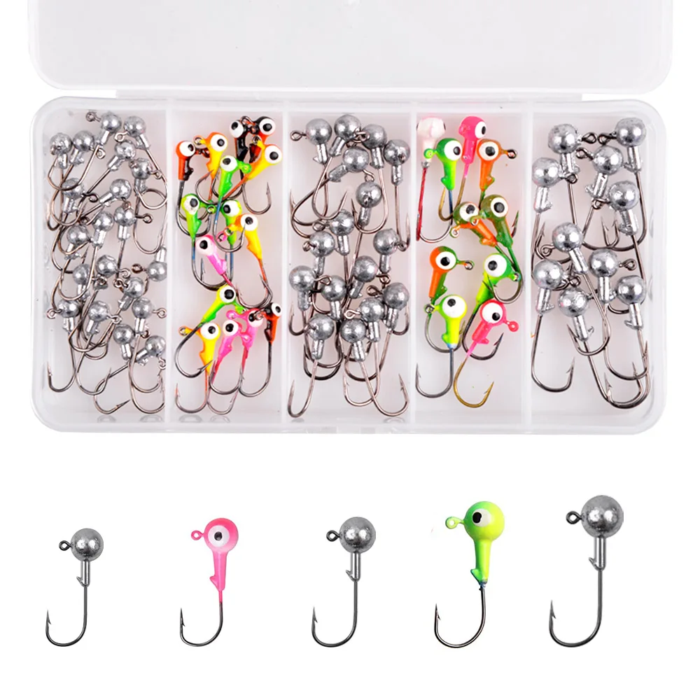 70 шт. Свинцовые джиг головки морской воды Кривошип рыболовный крючок набор джиг головки для басов рыболовная форель червячная Приманка рыболовная установка джиггинг колючий рыболовный крючок