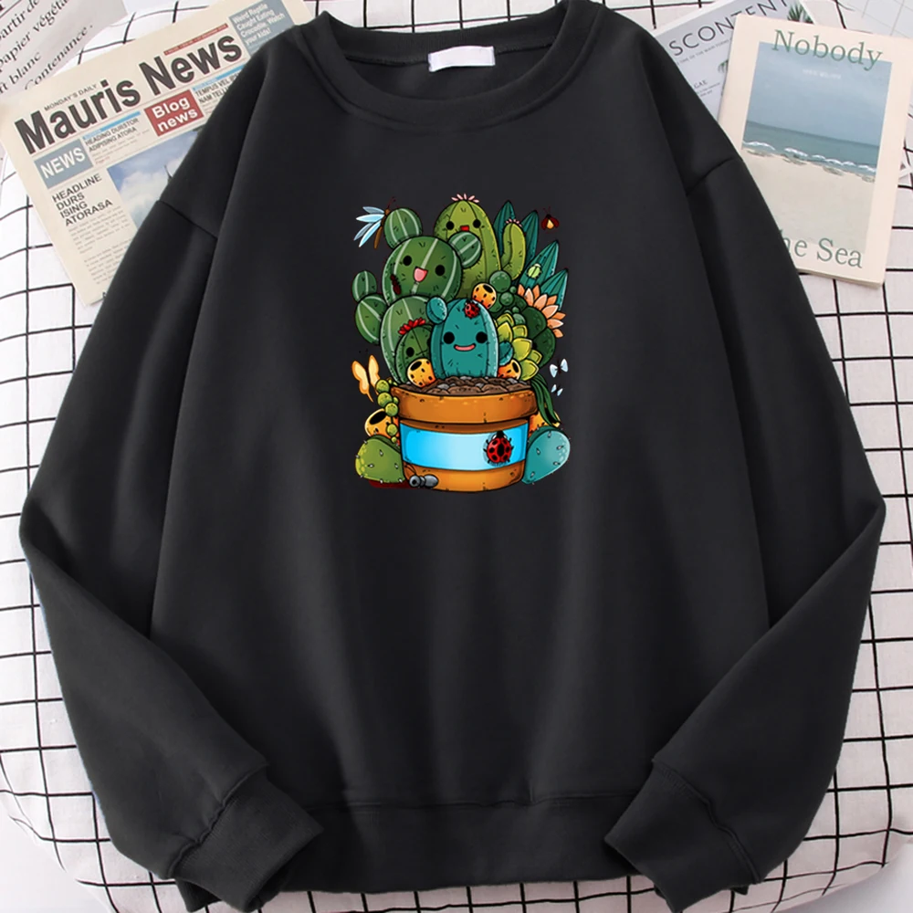 Свитшот женский с мультяшным принтом, мягкий Свободный Топ с суккулентами, милая Повседневная модная одежда с круглым вырезом, большие размеры, на осень