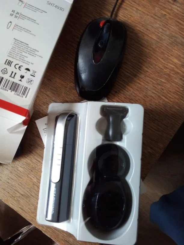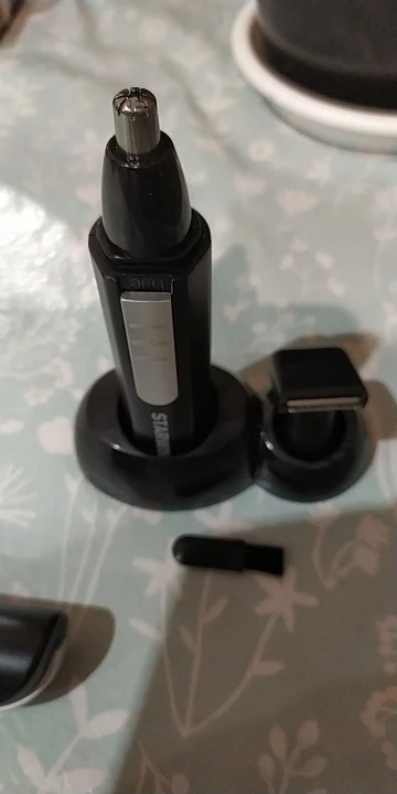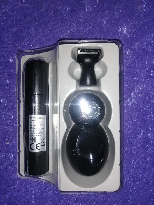 Пришло быстро. Работает от 1 батарейки АА, не входящей в комплект. Всего 2 насадки, для носа и ушей и для окантовки волос. В держателе держится плохо, не плотно. В комплекте идёт щёточка для чистки насадок. Девать её некуда,в держателе под неё ничего не предусмотрено. В целом время покажет как прослужит это устройство.