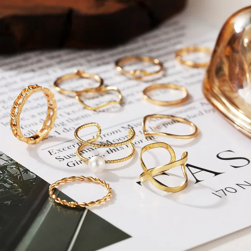Набор колец с жемчугом в стиле бохо для женщин, модные ювелирные ук...
