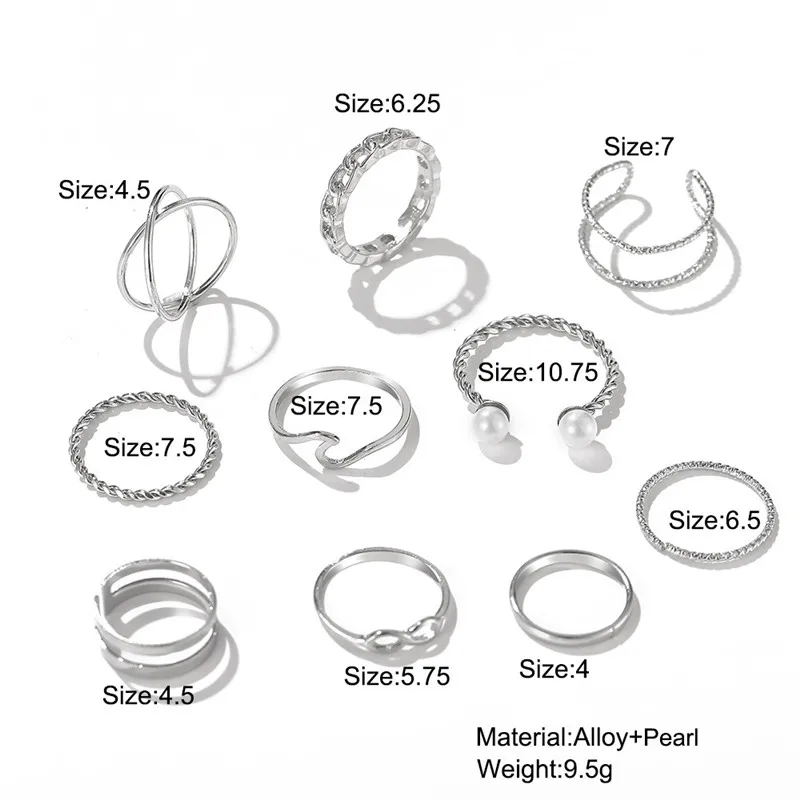 Набор колец из 10 частей с жемчугом и геометрическим рисунком, регу...