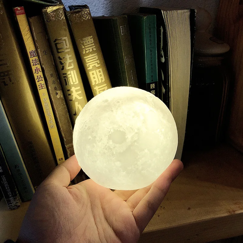 Лампа в виде Луны с 3D рисунком, светодиодный ночсветильник, декоративные светильники с подставкой в виде Луны для детской спальни, 8 см10 см12 см, на батарейках