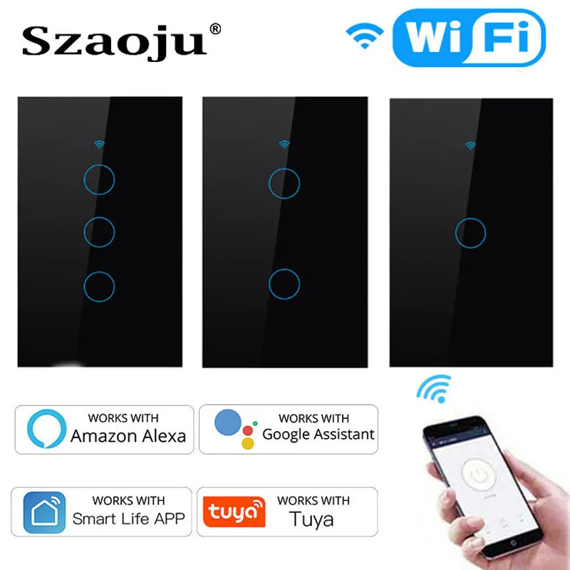 Умный сенсорный выключатель Szaoju с Wi-Fi, настенный выключатель для умного дома, для Alexa, Google Home, сенсорный выключатель
