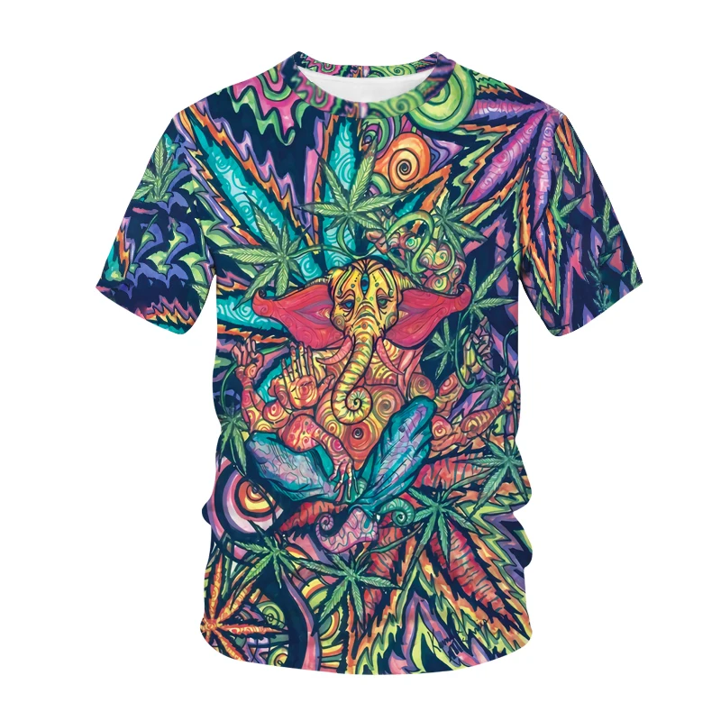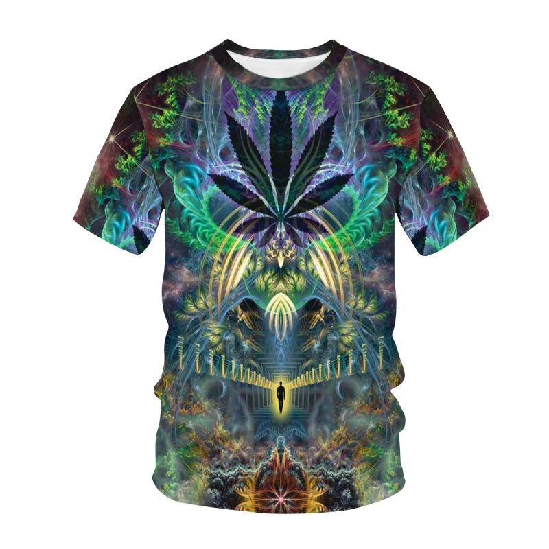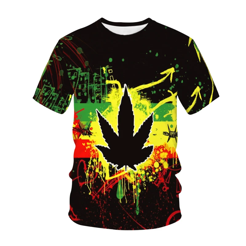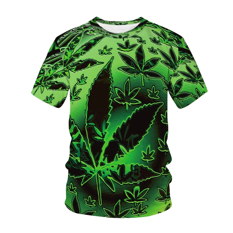 Футболка Мужскаяженская с принтом зеленых листьев конопли, повседне...