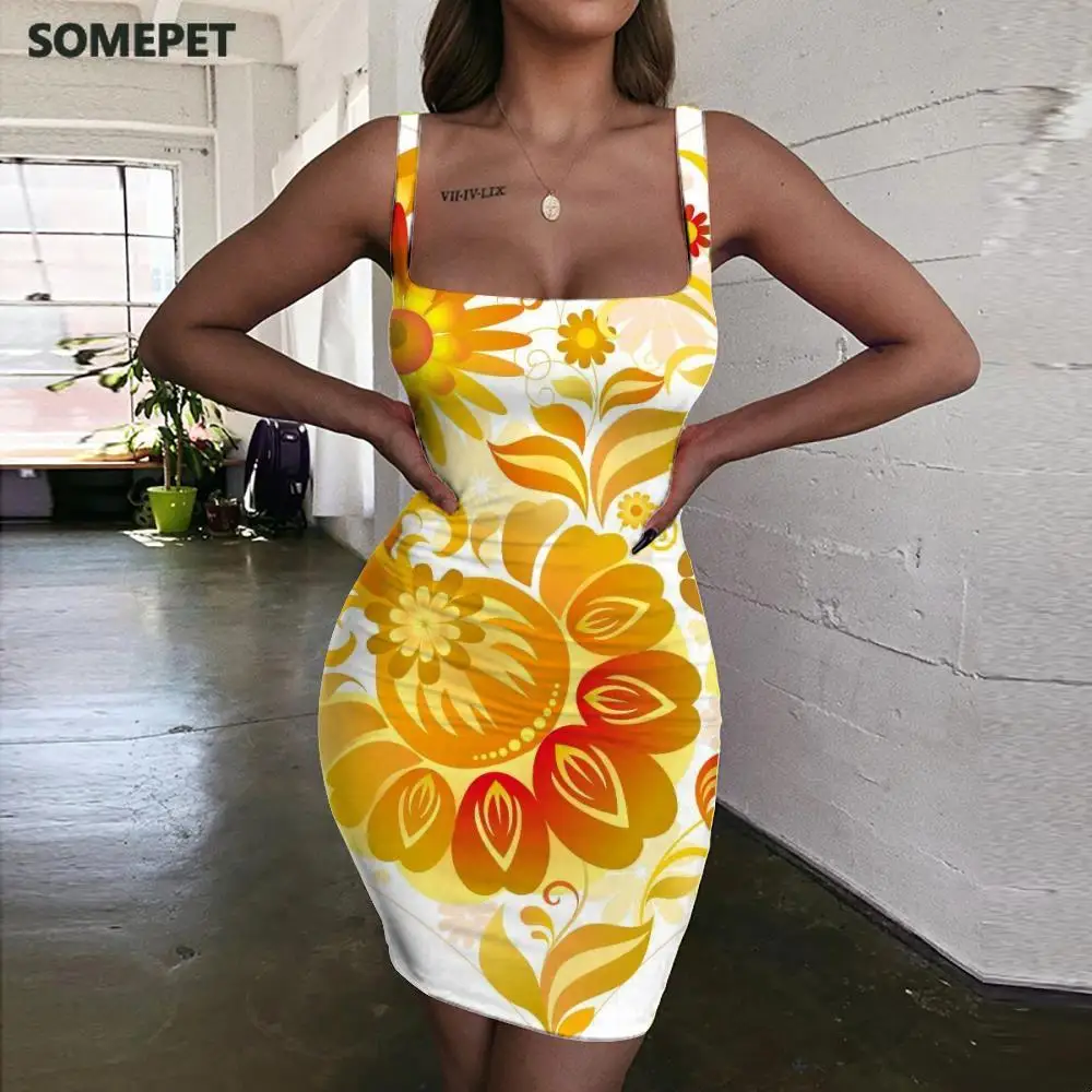 Женские платья-тюльпаны, новинка, сарафан с лямкой на шее, без рукавов, в стиле Харадзюку, женская одежда с 3D-принтом, женская пляжная одежда в стиле бохо
