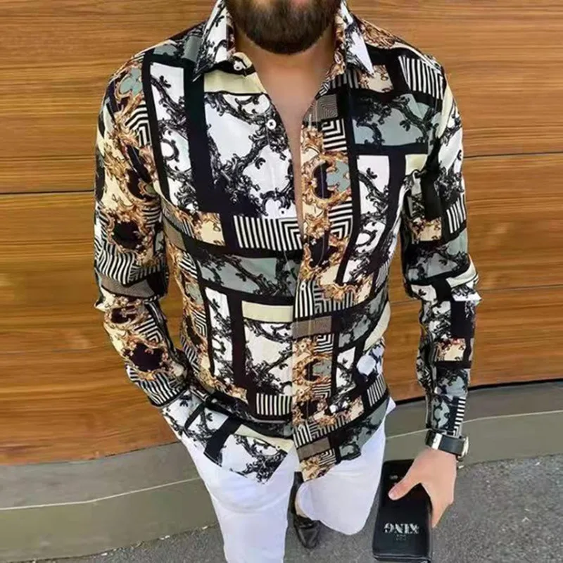 Роскошная золотая Мужская Осенняя рубашка с длинным рукавом, мужска...