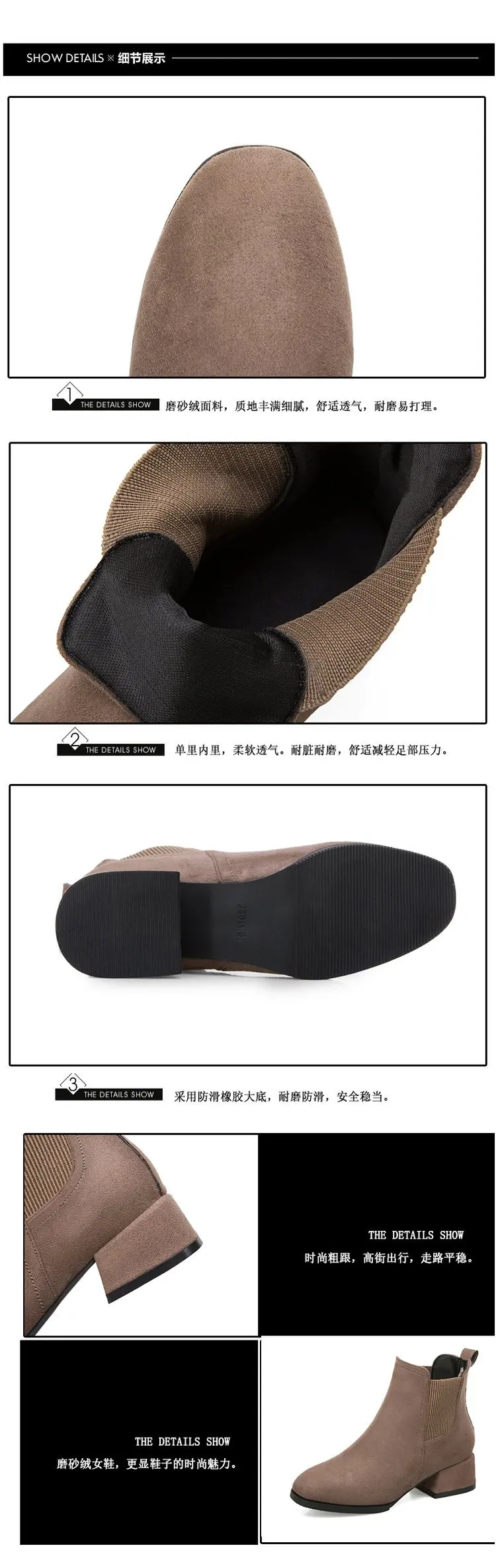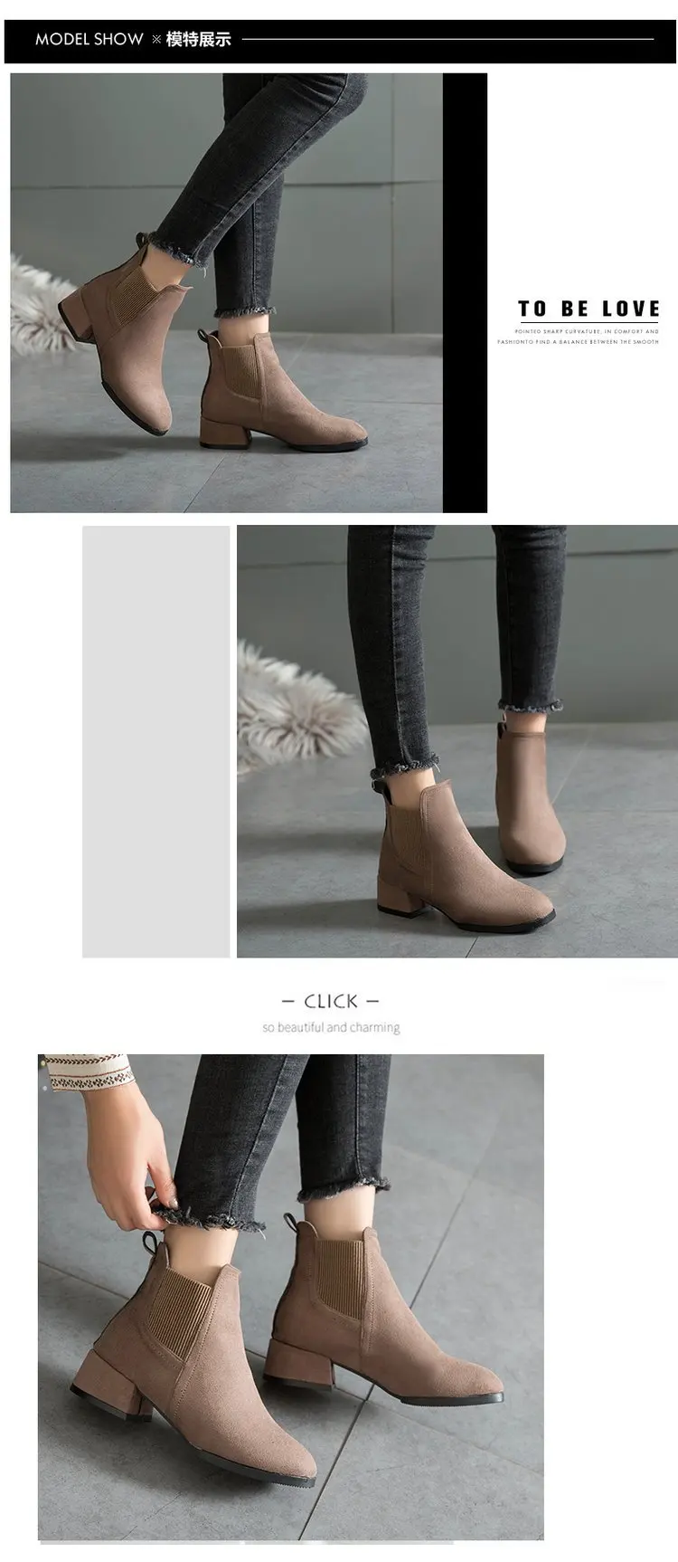 Женские замшевые ботинки челси, теплые ботинки на среднем каблуке, ...