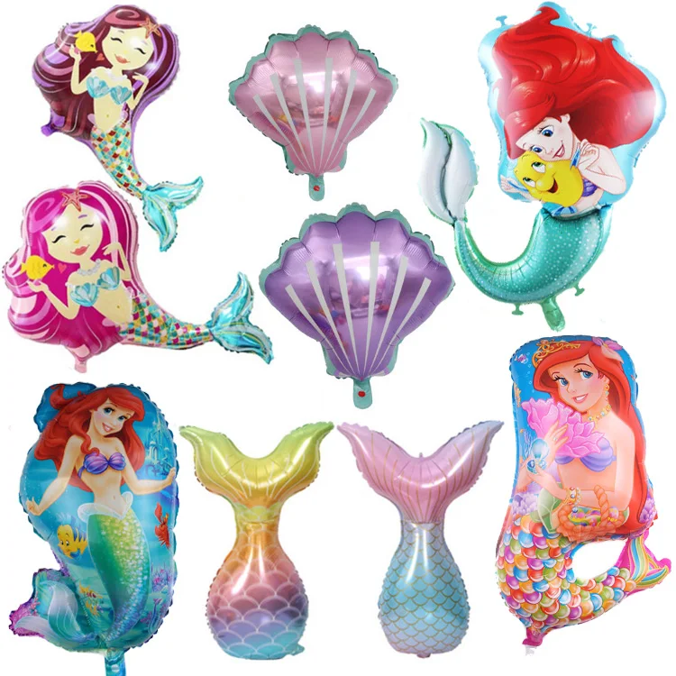 Воздушные шары Русалка Ариэль, вечерние ничные украшения для детского дня рождения, аксессуары для игрушек, морские летние пляжные ракушки, гелиевые шары