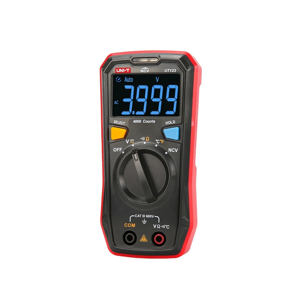 DC 4V/40V/400V/600V ±0.5%. AC 4V/40V/400V/600V ±1%. Сопротивление 400Ω/4kΩ/40kΩ/400kΩ/4MΩ/20MΩ ±0.8%. Температура -40 ~ 300°C ±4°C. Прозвонка цепей. Инверсный дисплей 44х26 мм. Питание 2 батареи AAA (R03). Размеры 130 x 65 x 28 мм. Техническое описание Постоянное напряжение: 4V/40V/400V/600V ±0.5% Переменное напряжение: 4V/40V/400V/600V ±1% Сопротивление: 400Ω/4kΩ/40kΩ/400kΩ/4MΩ/20MΩ ±0.8% Температура: -40 ~ 300°C ±4°C Разрядность дисплея 4000 отсчетов Прозвонка соединений со звуковым сигналом Сохранение показаний (HOLD) Индикация разряда батареи Режим индикации опасного напряжения (NCV) на три уровня Автоматическое отключение питания (15 минут) Инверсный дисплей 44х26 мм Питание: 2 батареи AAA (R03) Габаритные размеры: 130 x 65 x 28 мм Вес: 130 грамм.
