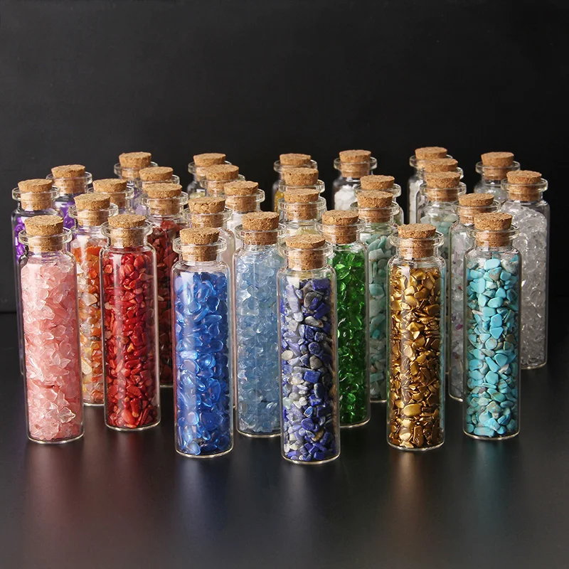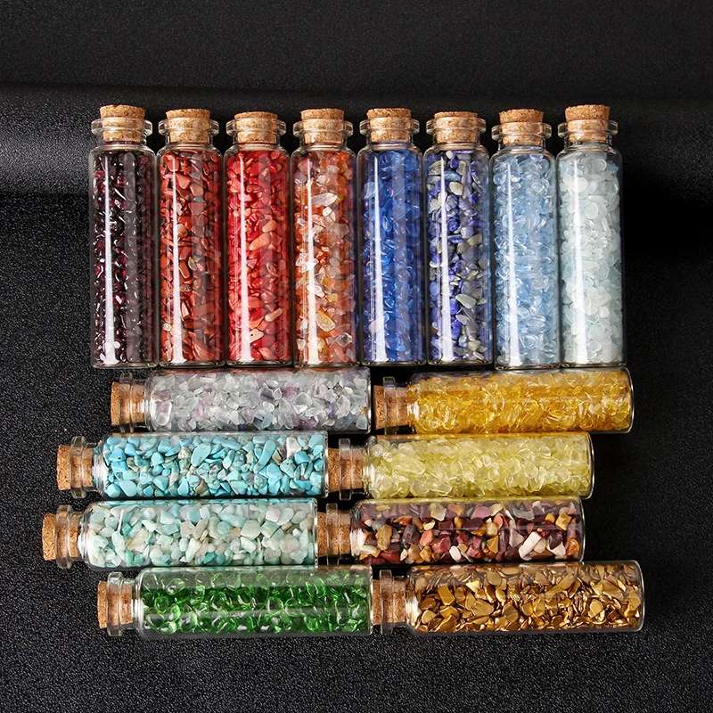 Природный гравий кристаллы, стеклянная бутылка для желаний 3-5 мм, минералы рейки, лечебный образец, драгоценные камни для домашнего декора, подарки на день рождения