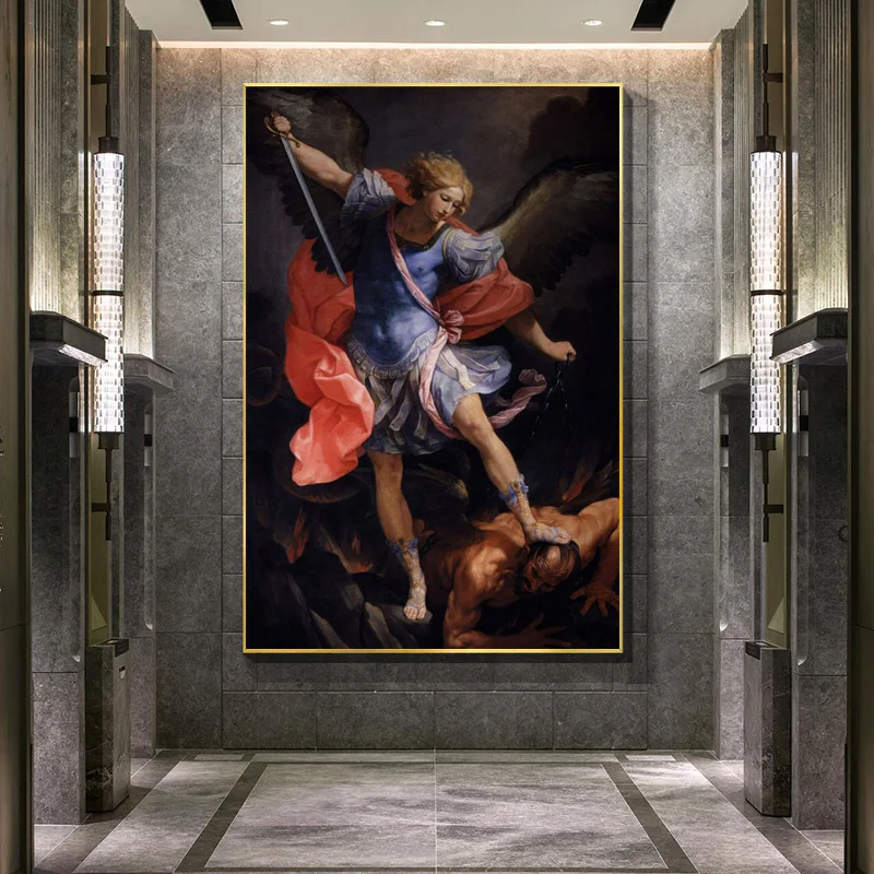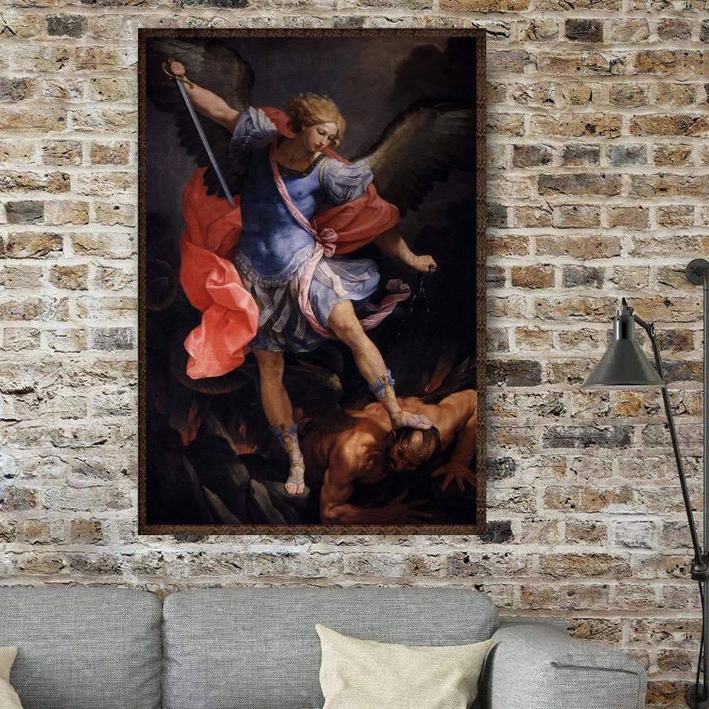 Арчангель Майкл побеждает сатану стены Искусство Печать на холсте постеры Гидо Рени художественные картины для гостиной домашний декор