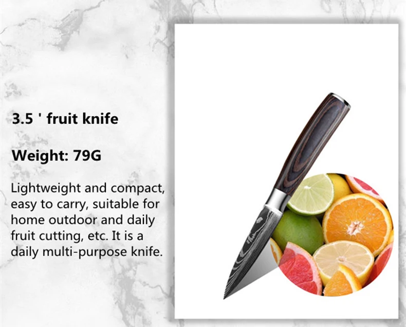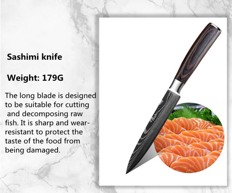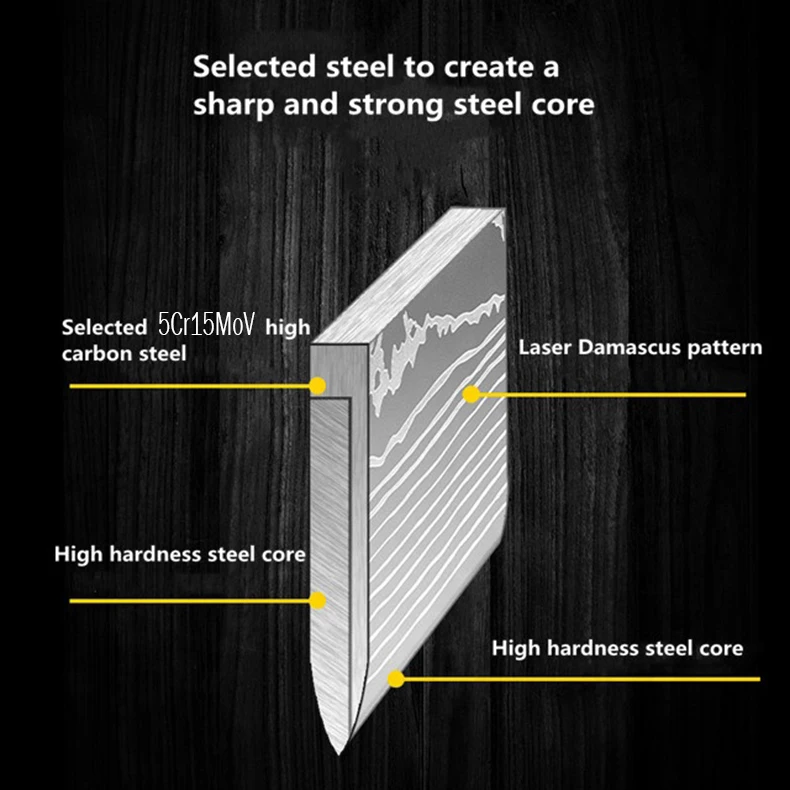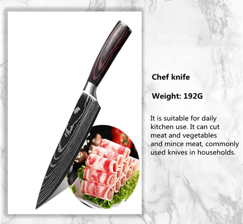 [Профессиональный кухонный нож шеф-повара] -- Многофункциональный кухонный нож может легко обрабатывать ваши ежедневные кухонные задачи резки, нарезки, измельчения, измельчения и нарезки фруктов, овощей и всех видов мяса. ПрофессиональныйИ все-круглые домашние повара нож для вас.【Легко использовать-очень водонепроницаемый и нескользящий. Идеальная форма позволяет легко и безопасно резать и минимизировать усталость, онемение или боль после длительного использования.【Супер острый Edge】-5Cr15MoV из высокоуглеродистой нержавеющей стали с лазерным Дамасским узором. 55 ± 2 HRC, с вакуумной термообработкой твердостью и долговечной четкостью.【Дизайн ручки -- Высококачественная деревянная ручка pakka[Идеальные подарки] -- вы можете быть предоставлены своим друзьям, родителям, коллегам и партнерам, и вы можете писать на них благословения, продуманный дизайн и благословения будут запоминаться и перемещаться навсегда.