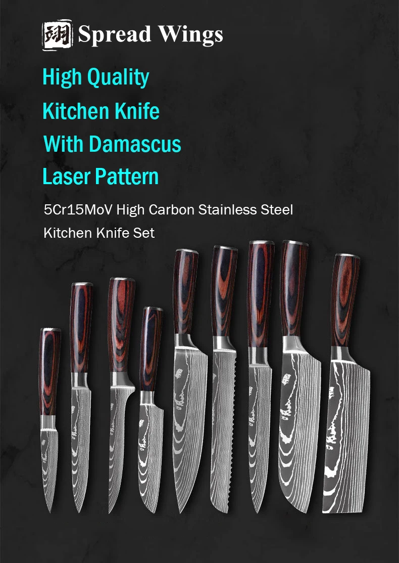 Набор японских кухонных ножей из нержавеющей стали, шеф-повар сантоку с лазерным узором Дамаска, универсальный инструмент для обрезки хлеба, нарезки и обвалки