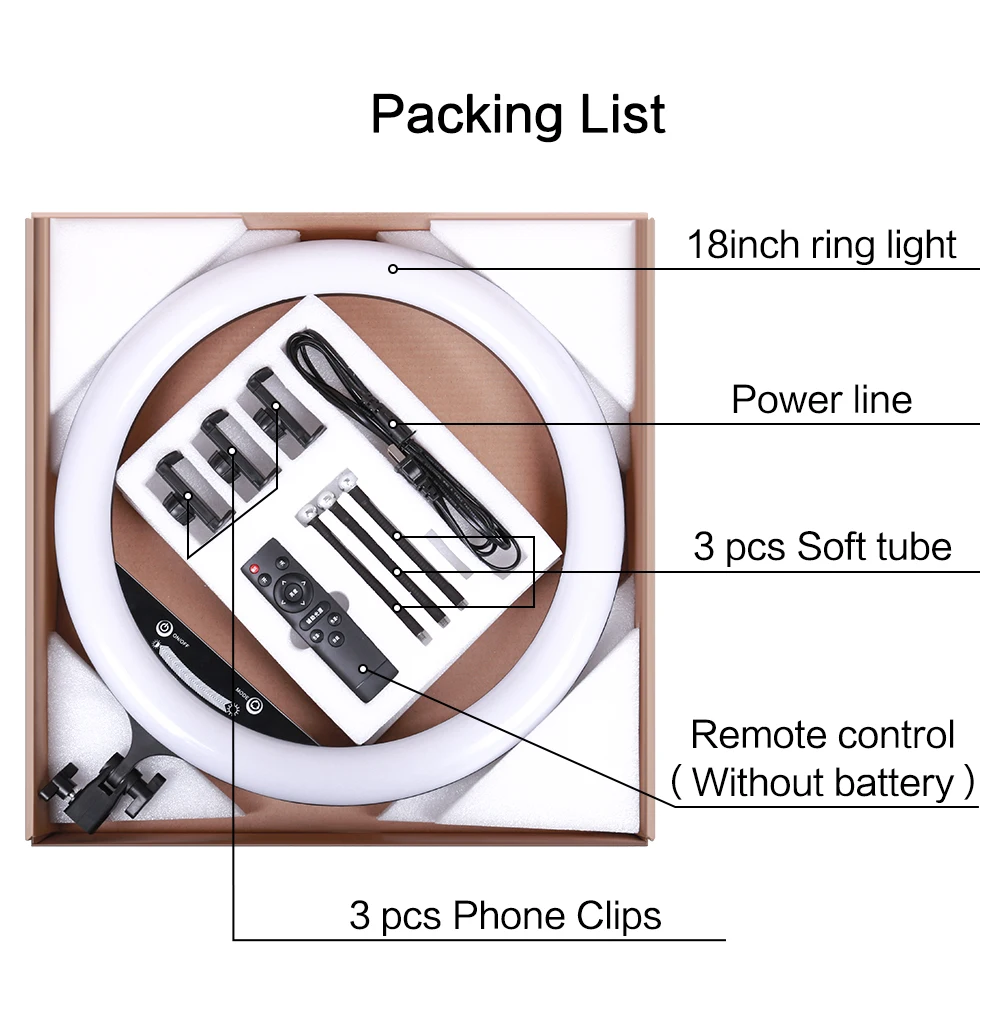 18 дюймовый кольцевой светильник: с регулируемой яркостью и регулируемой яркостью, вы можете настроить светильник на 10%-100%. Кольцевой светильник для селфи делает вас более привлекательным и очаровательным.