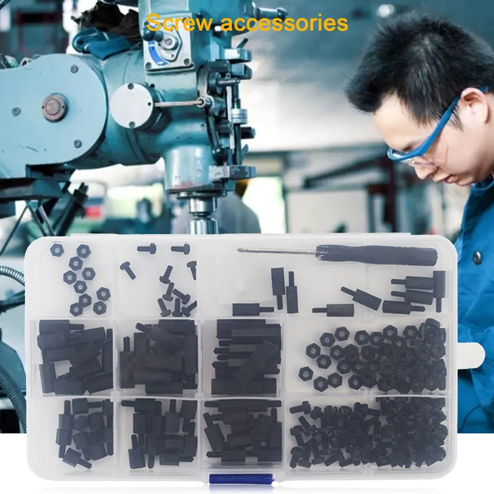 Набор нейлоновых винтов 210 шт.лот, черные нейлоновые винты, гайки,...