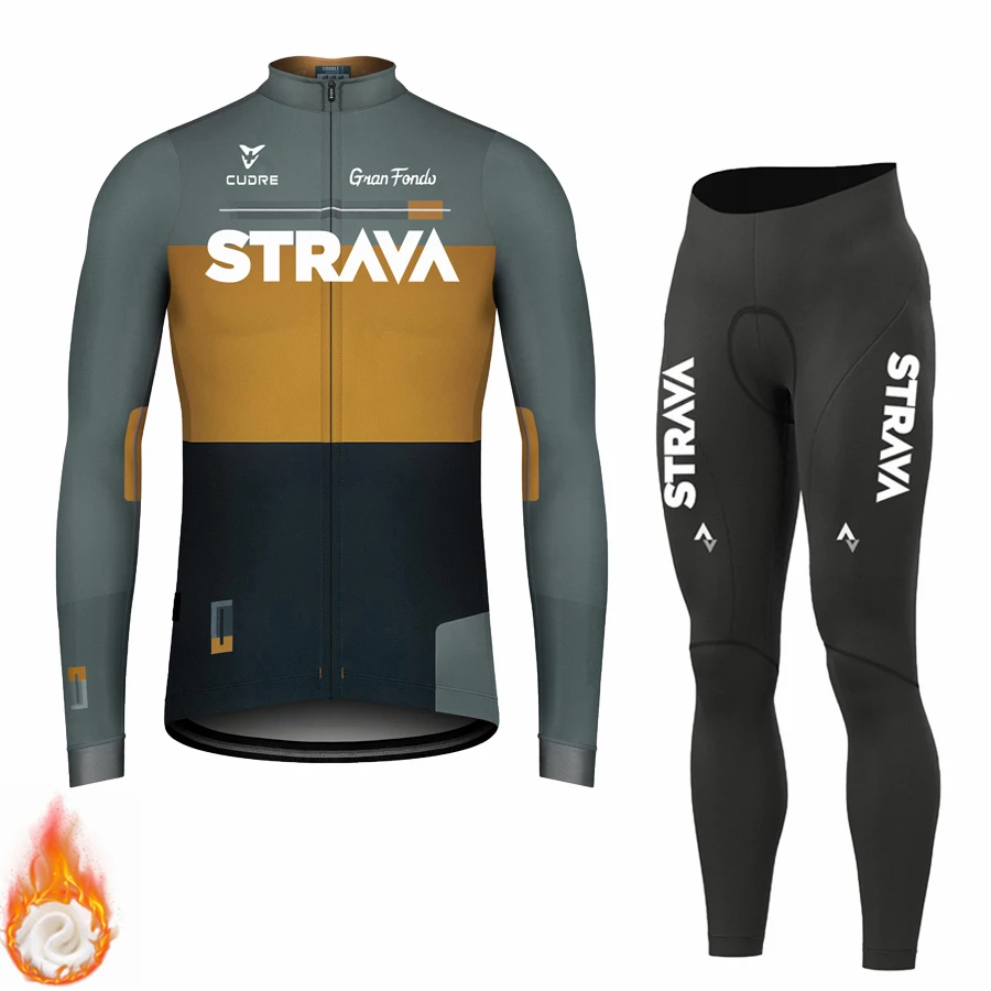 Зимний теплый флисовый трикотажный комплект для велоспорта STRAVA, ...