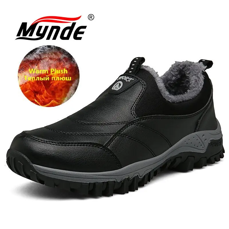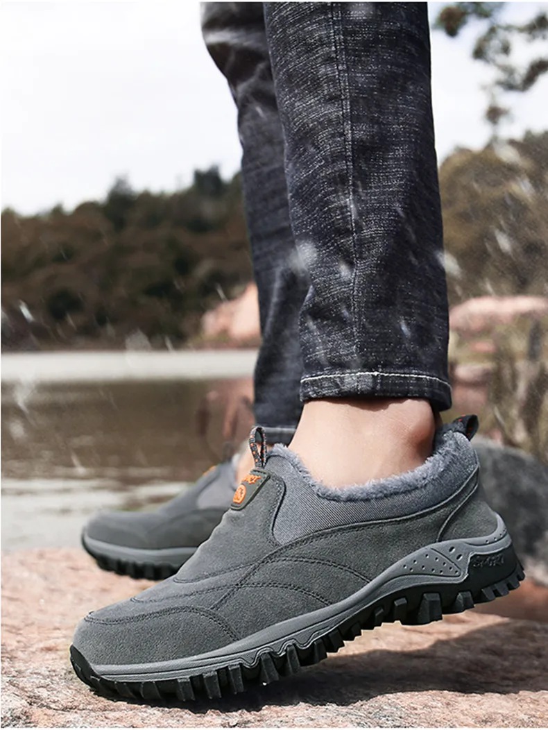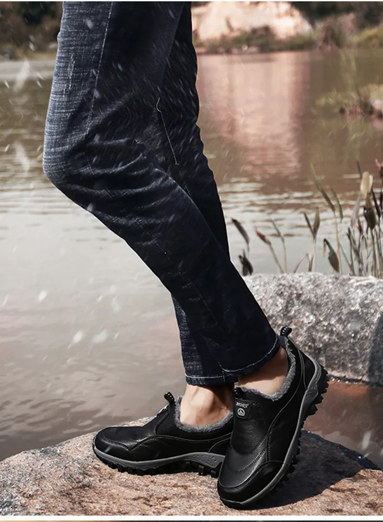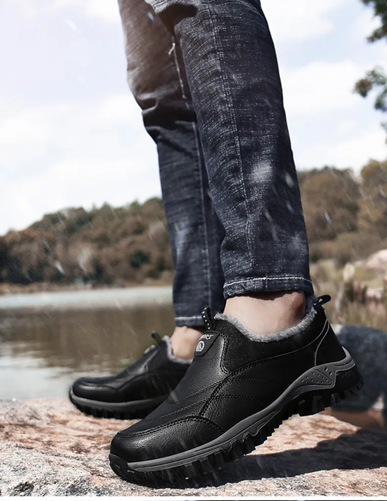 Зимние мужские ботинки для снега, теплые плюшевые уличные зимние ботинки, мужские рабочие лоферы, повседневная обувь, походные Нескользящие резиновые мужские уличные ботинки
