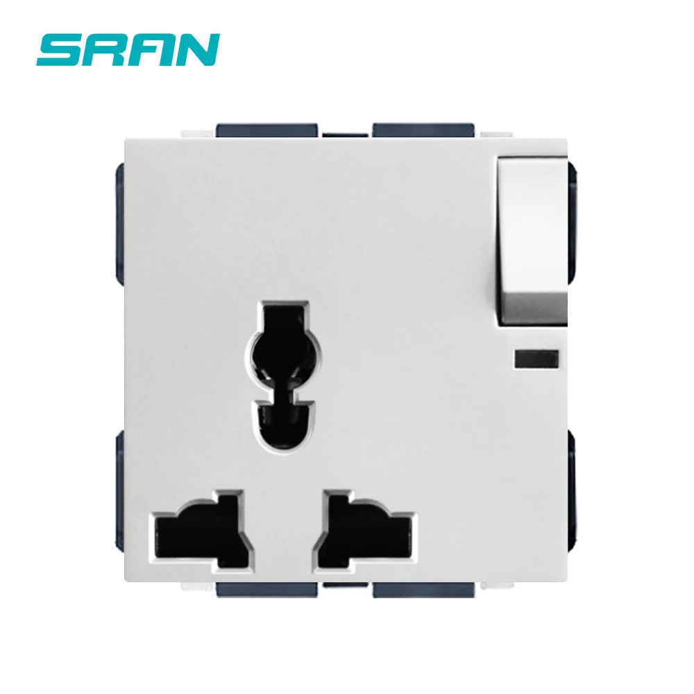 SRAN, серия A6, серебристая стеклянная панель, выключатель света, европейские французские электрические розетки, USB 3 контакта 5 контактов, ТВ RJ45, модуль сделай сам