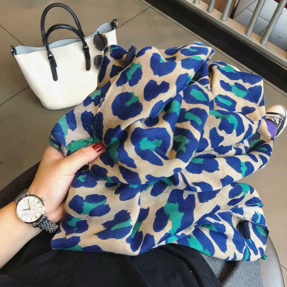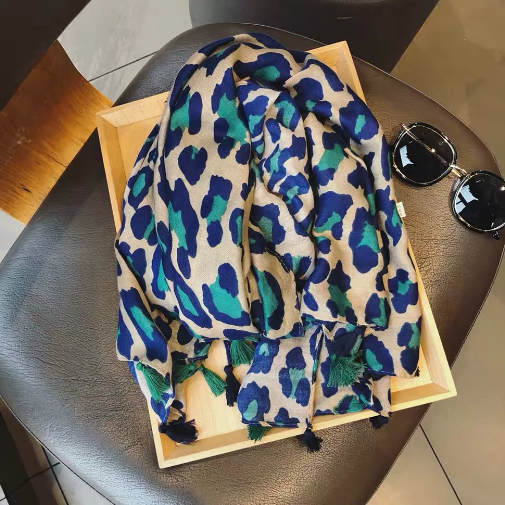 Женский хлопковый и льняной шарф, легкий мягкий шарф с леопардовым принтом, дизайнерская бандана, 2021