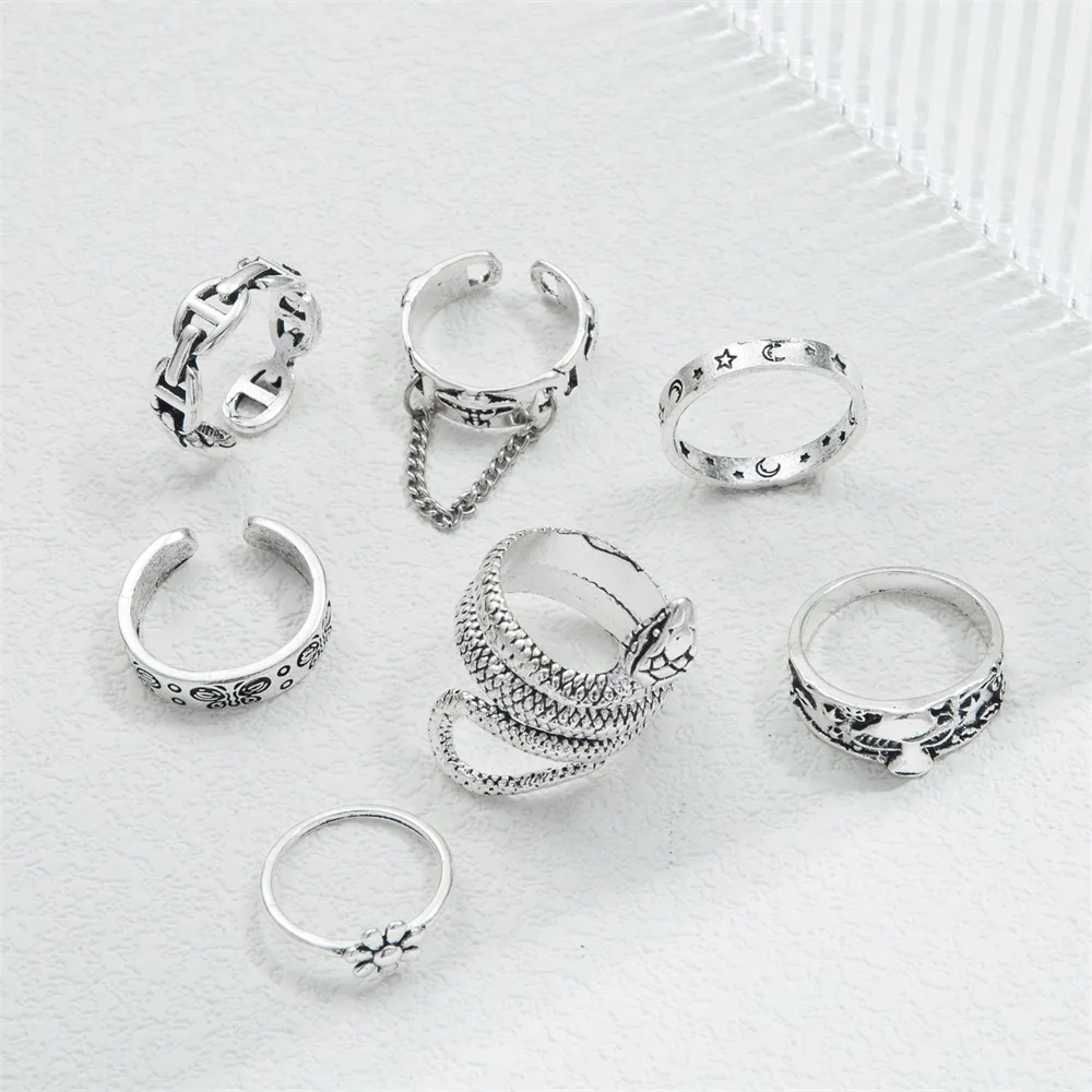 Набор Колец IFME для женщин и мужчин серебристого цвета, винтажный Ювелирный Комплект из кольца в готическом стиле, змея, бабочки, цветка, гриба, звезды, Луны, Подарочная бижутерия