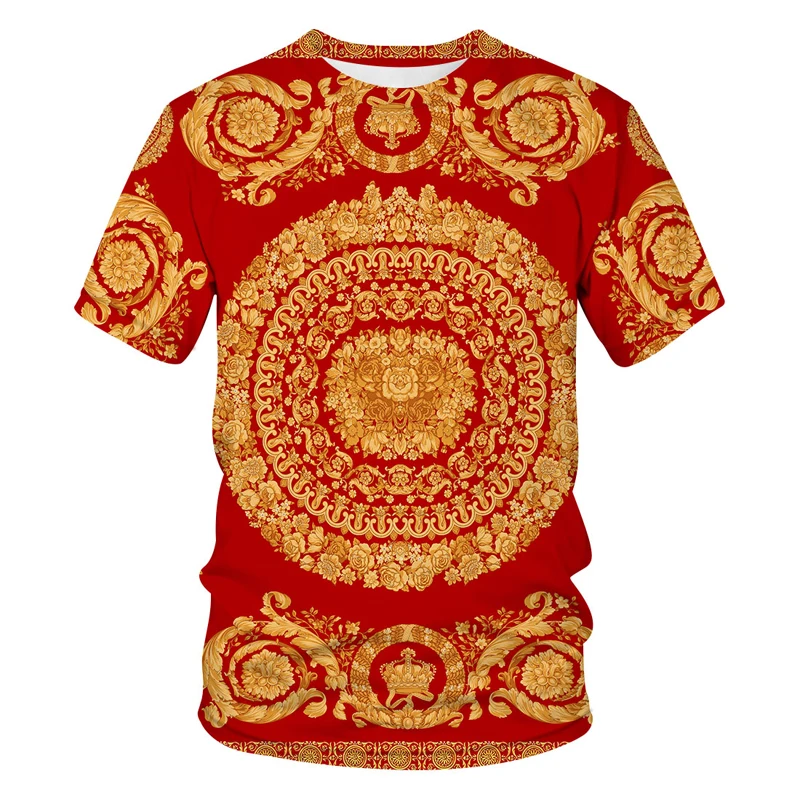 Футболка мужская с 3D-принтом в стиле барокко, роскошная брендовая ...