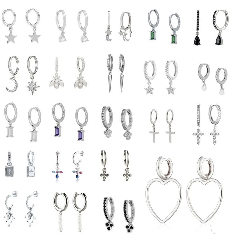 pendientes plata 925silver color jewwlry Gift