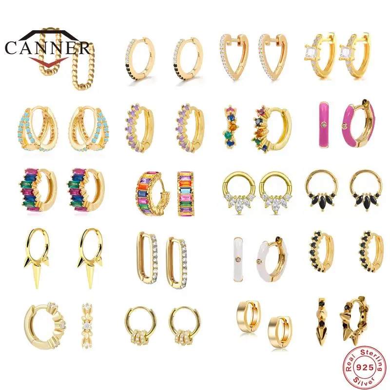 Минималистичные серебряные серьги-кольца CANNER, украшение для пирсинга, ювелирные изделия для женщин с фианитом, ювелирные изделия