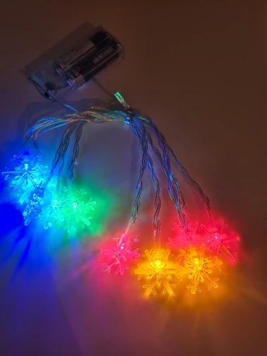 Ждала очень долго. Даже защита заказа закончилась. Но все таки доплелась до меня моя гирлянда за день до нового года. Горит ярко, красиво. От двух пальчиковых батареек.