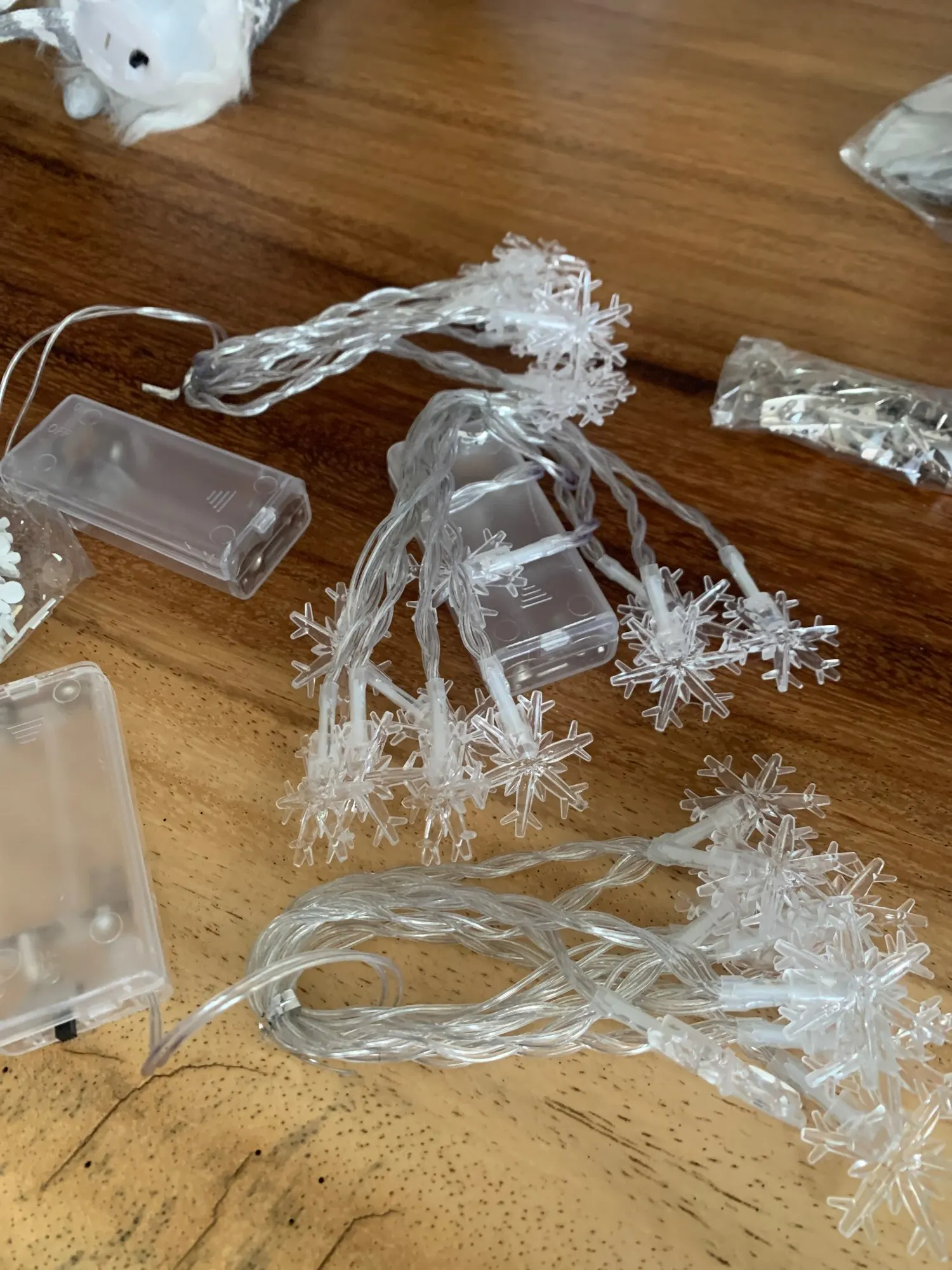 Это 10 коротких лампочек и батарейки, их можно поставить где угодно в доме.