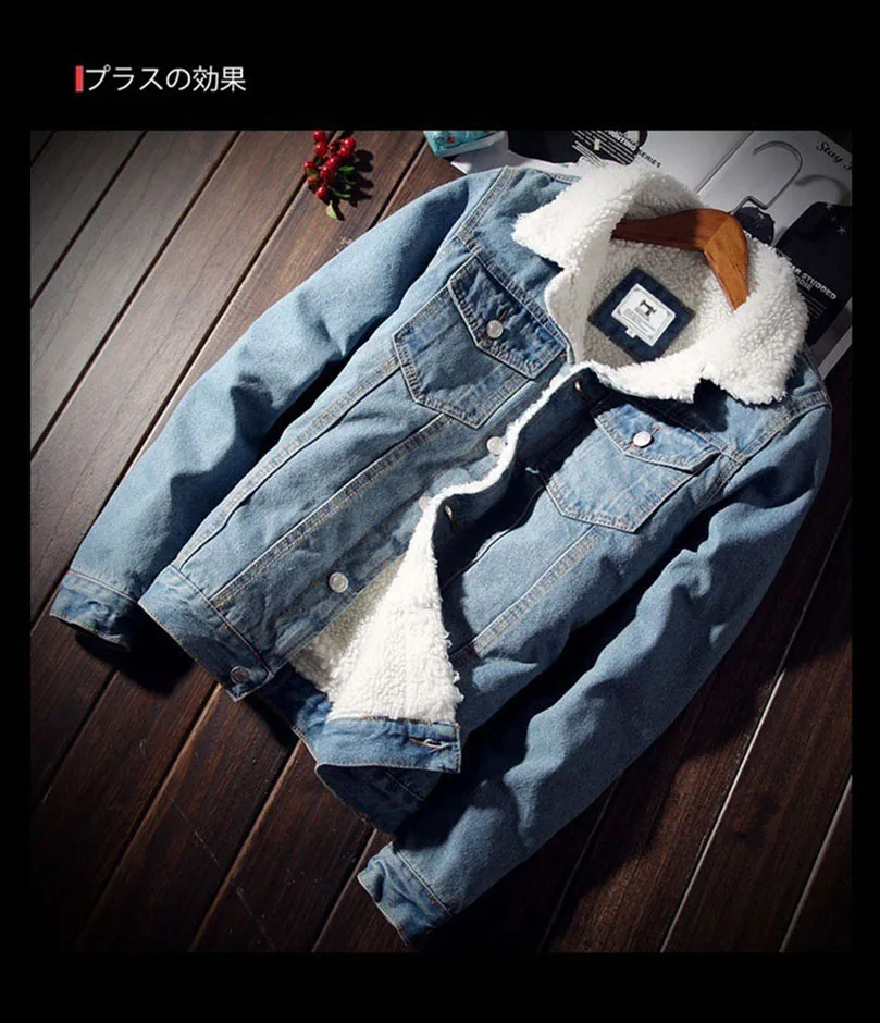 Мужская куртка и пальто, модная теплая флисовая Плотная джинсовая к...