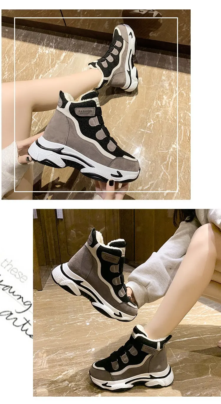 Женские нескользящие плюшевые ботинки на танкетке, Теплые повседневные кроссовки на платформе, зимние женские ботинки с высоким берцем, 2021
