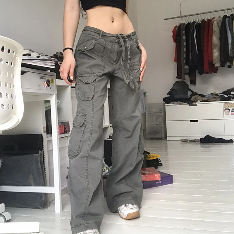 Джинсы-карго в ретро-стиле 1920-х годов y2k, винтажные брюки из денима с низкой талией и большими карманами, женские спортивные штаны