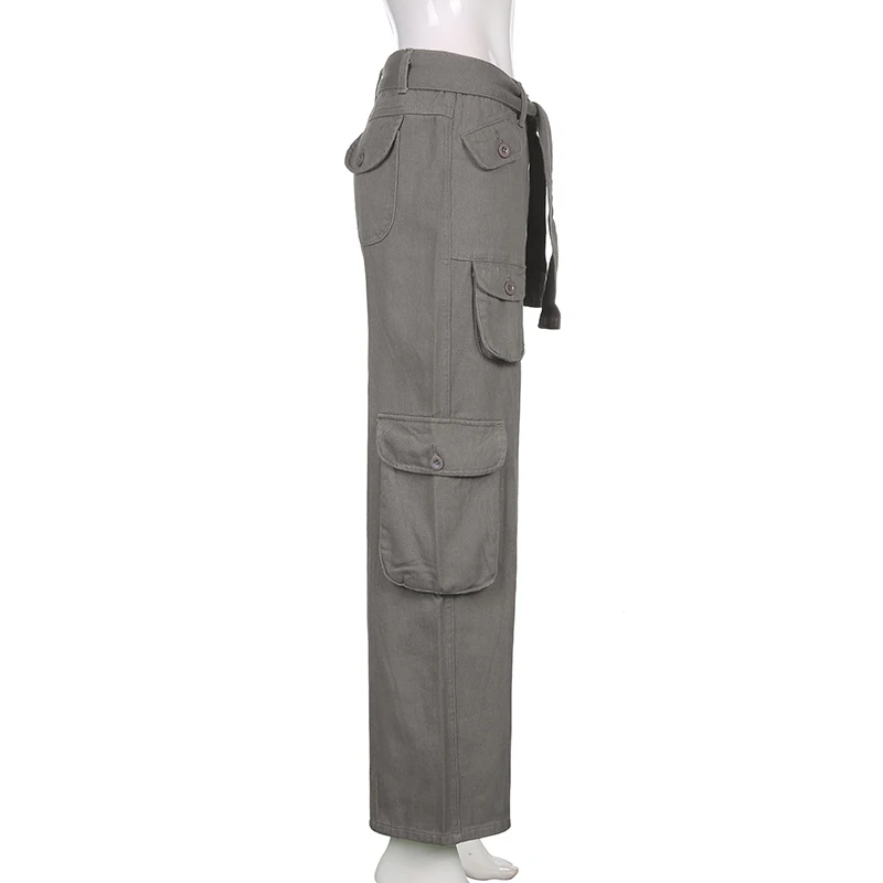 Джинсы-карго женские, с карманами, прямые, винтажные, в стиле ретро