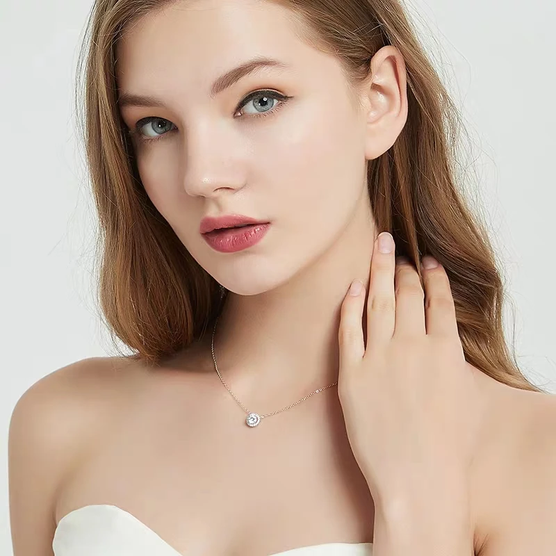 Стерлинговое Серебро 1CT 2CT 6,5 мм D Цвет Moissanite подвеска ореол ожерелье идеальное ограненное бриллиантовое ожерелье для женщин с сертификатом