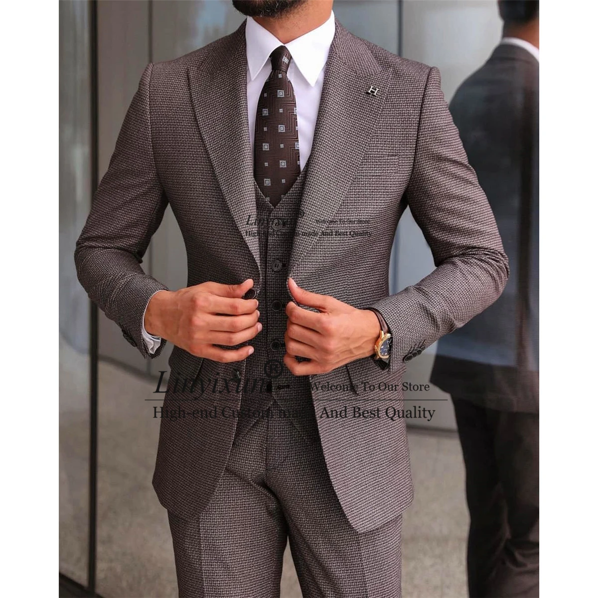 Костюм твидовый мужской из 3 предметов, классический приталенный пиджак, жилет, брюки, костюм для свадьбы и бизнеса