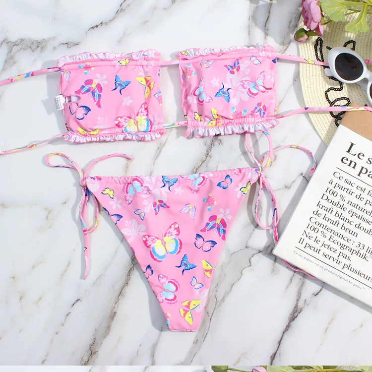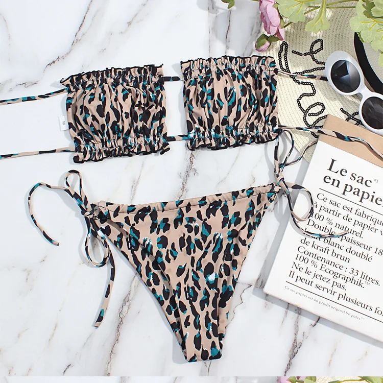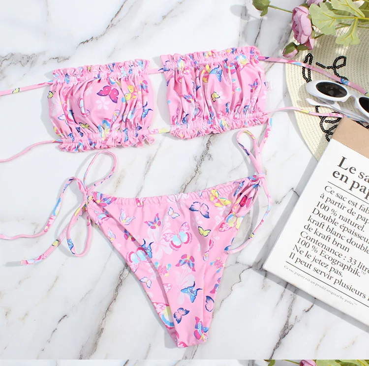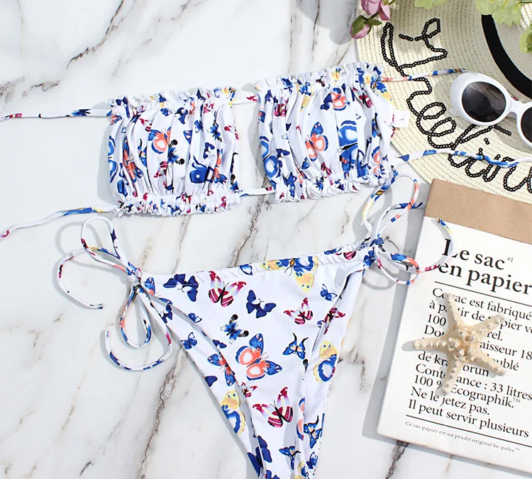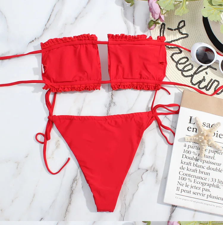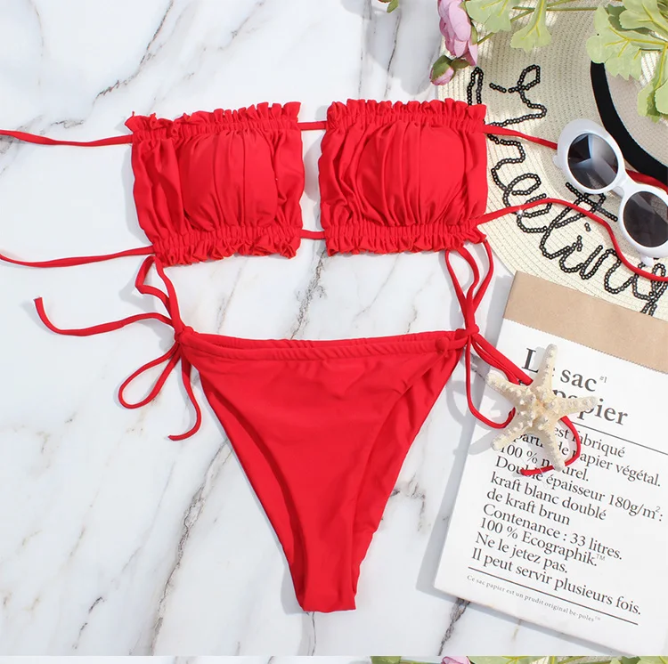 Женский плиссированный купальник-бандо, соблазнительное сращивающееся бикини, 2021, женский купальник-стринги, пляжные сшитые мини-стринги, купальный костюм