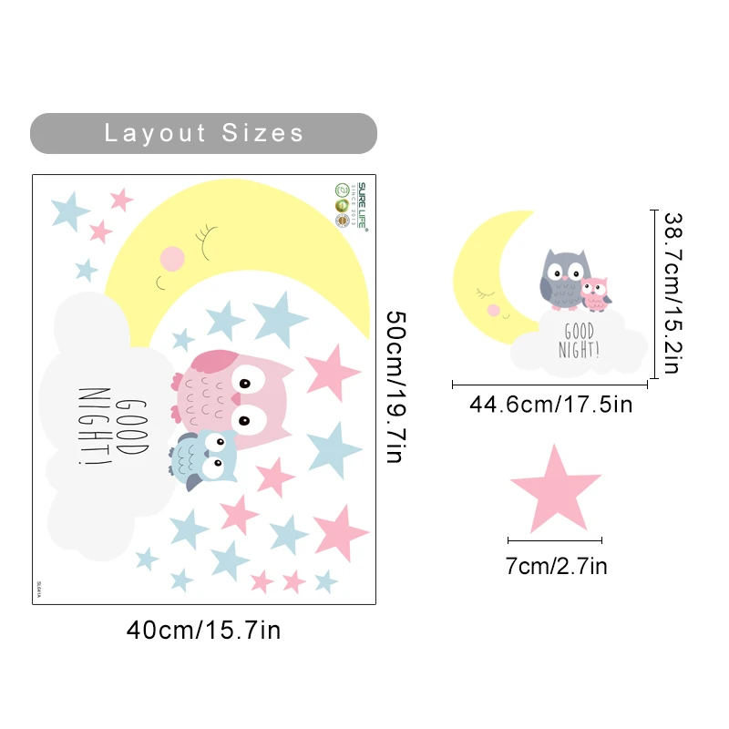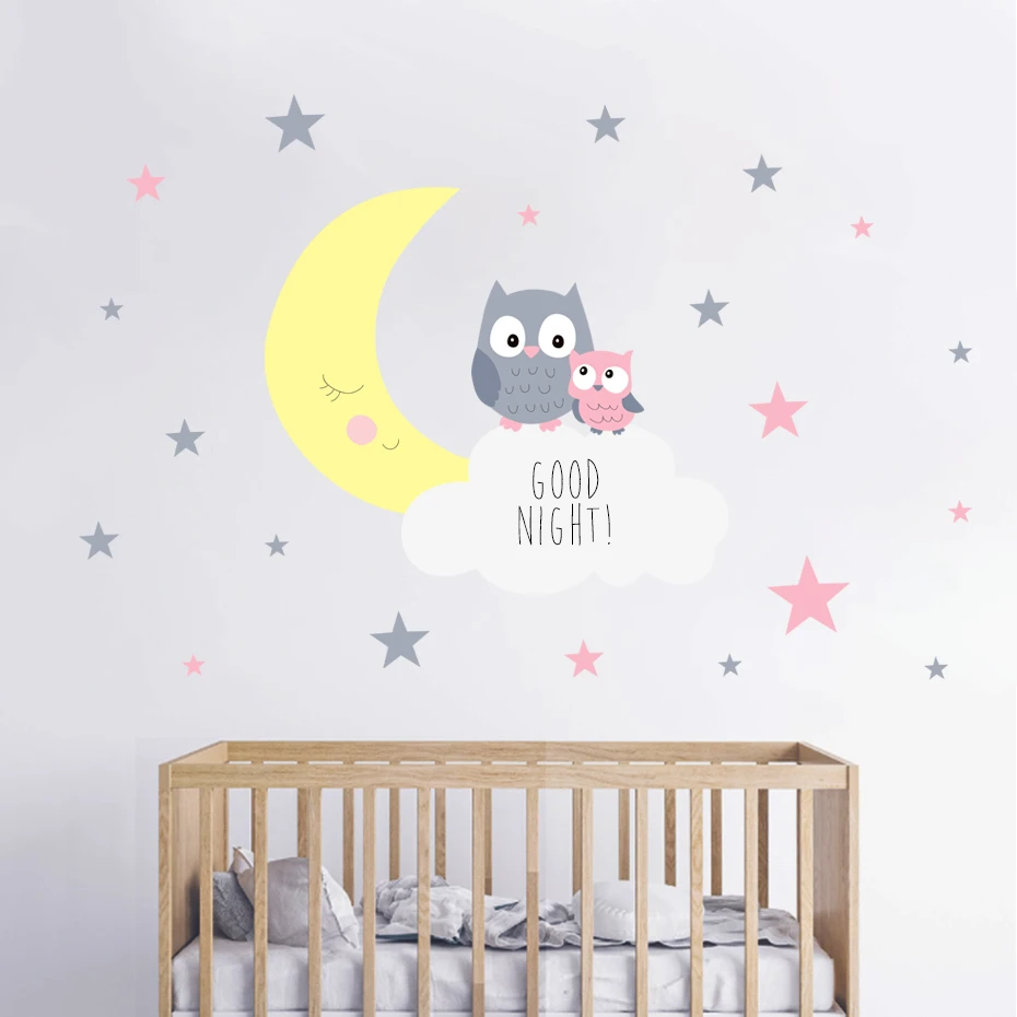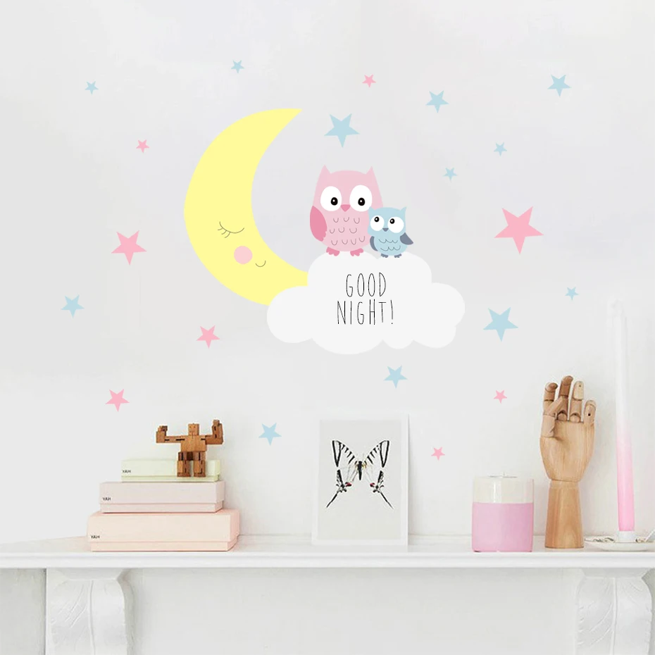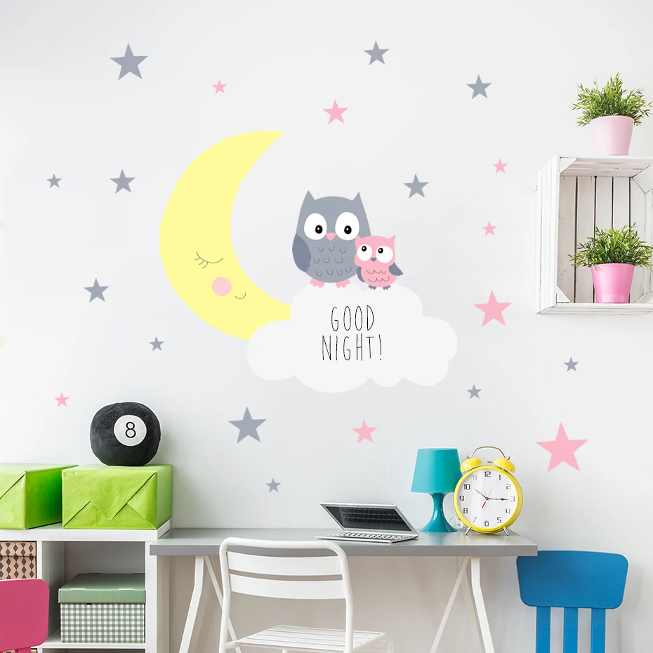 Мультяшная Сова желтая луна звезды облака виниловая настенная наклейка фотообои интерьер детской спальни домашний декор