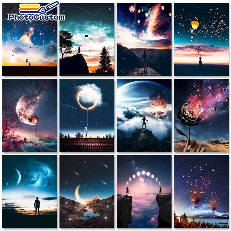 PhotoCustom масло Краски по номерам Наборы Луна декорации DIY Краск...