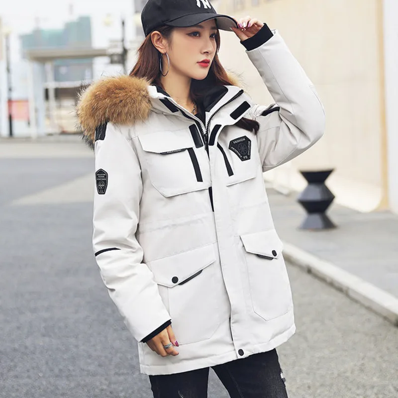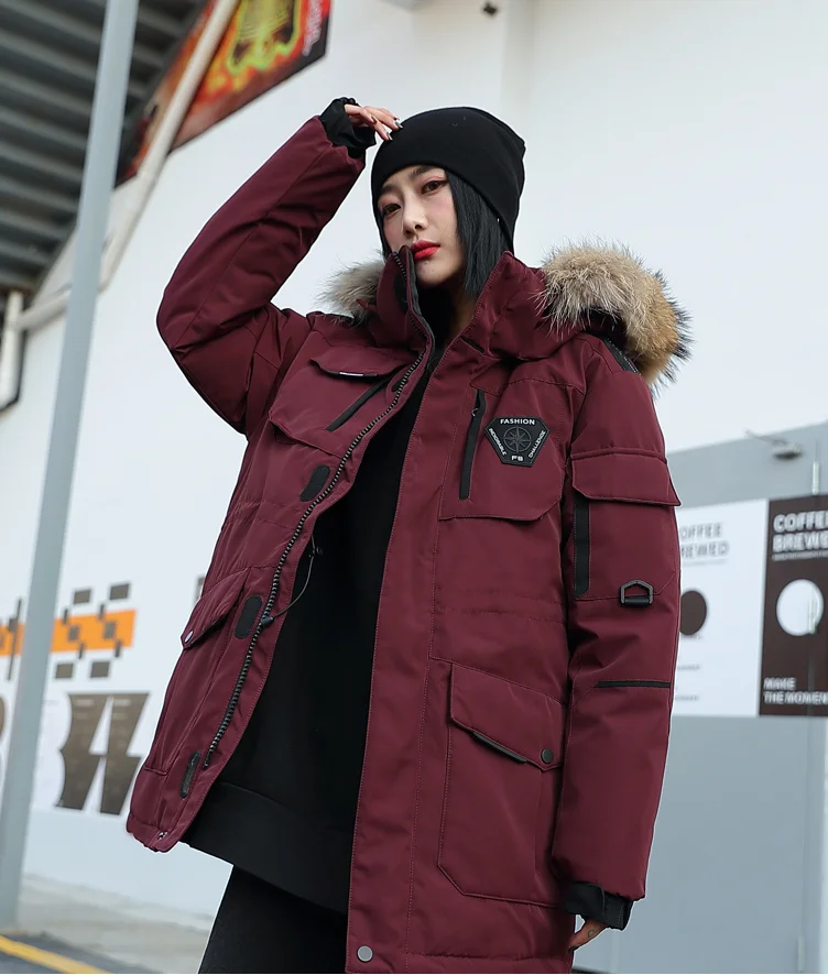 Утолщенный женский пуховик с большим натуральным меховым воротником, теплая парка-30 градусов, пара повседневных водонепроницаемых пуховых зимних пальто, Размер 3XL