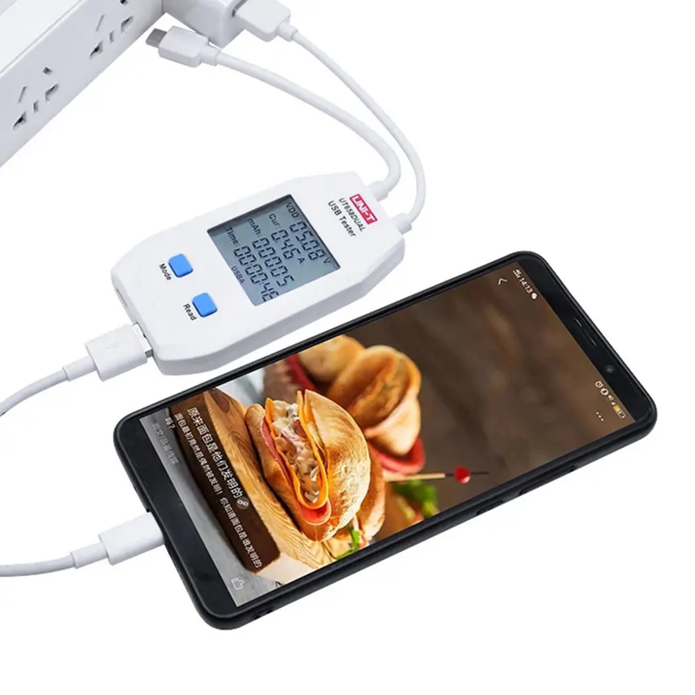 UNI-T UT658DUAL USB тестер напряжения и тока мониторы вольт амперы цифровой продукт зарядное устройство измеритель емкости с хранилищем данных