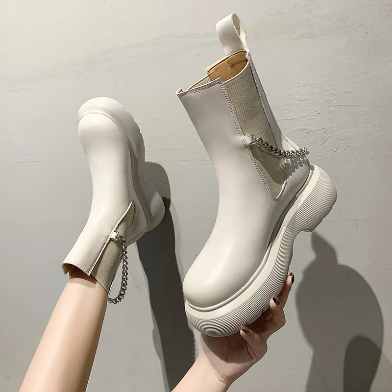 Модные новые роскошные ботинки челси, женские ботильоны на массивной платформе, ботильоны без шнуровки, брендовые дизайнерские ботинки на массивном каблуке
