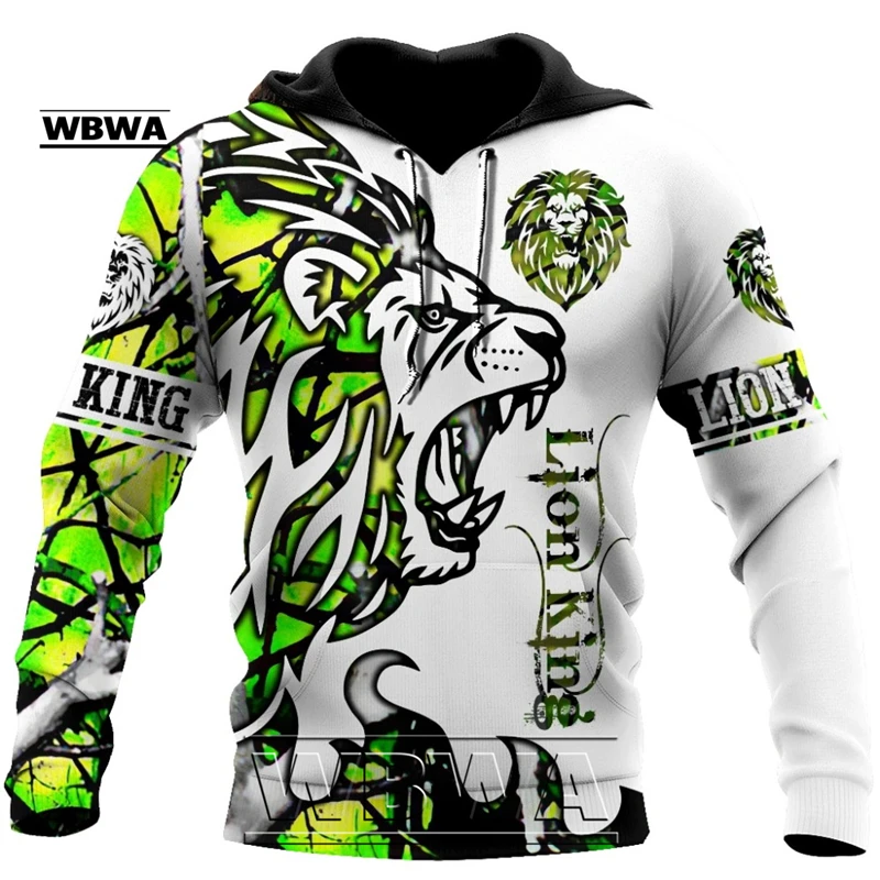 Мужская толстовка с капюшоном, с принтом льва, из кожи тигра, Повсе...