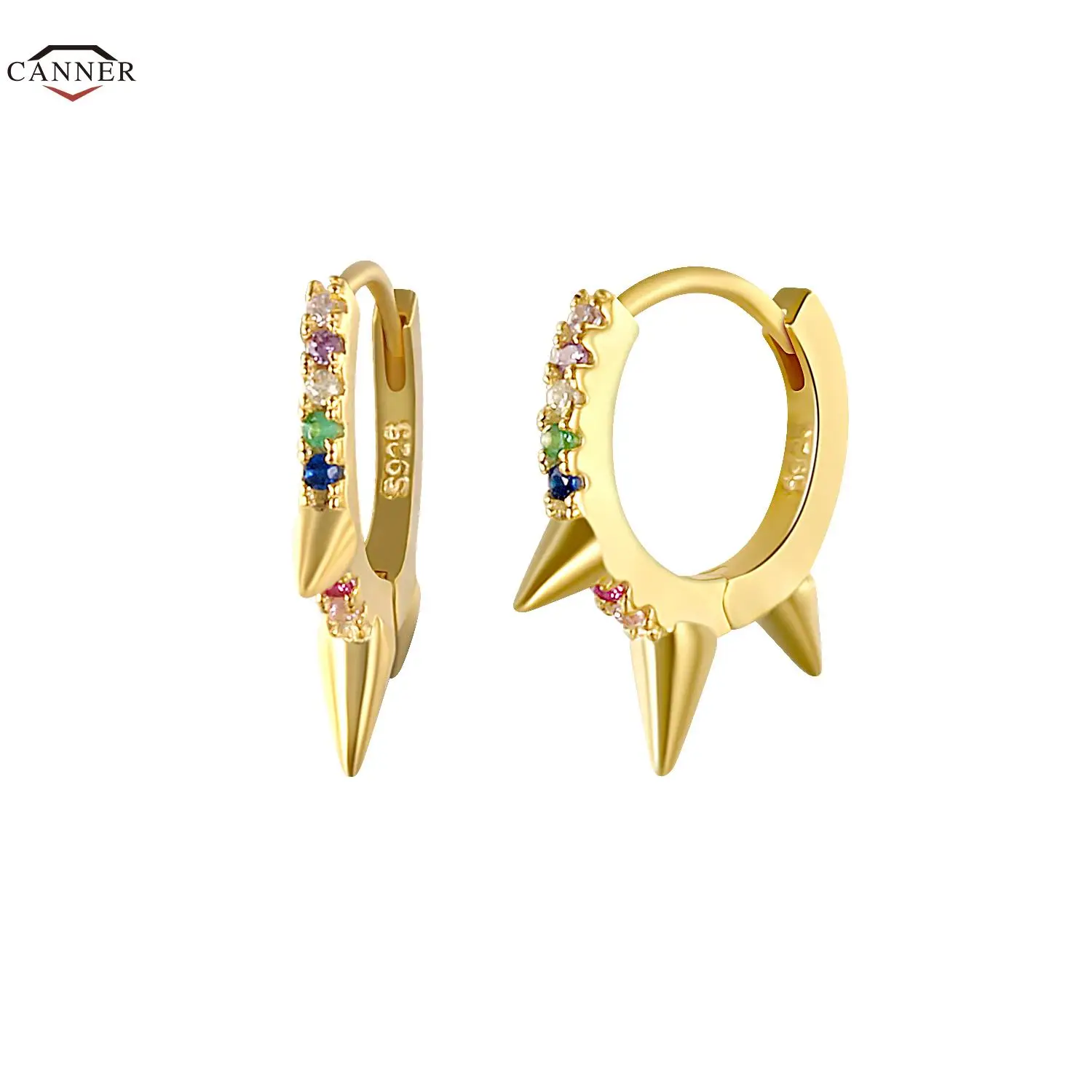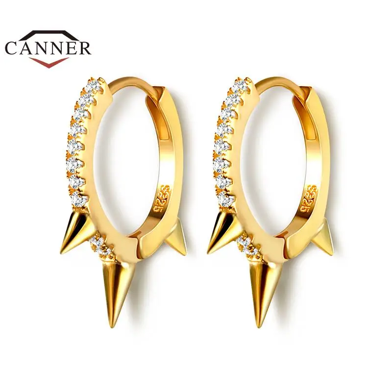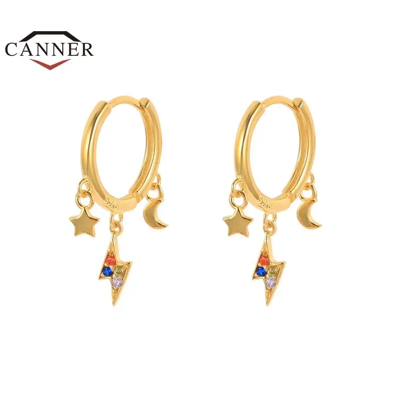 Женские серьги-кольца с заклепками CANNER, минималистичные круглые серьги из стерлингового серебра 925 пробы с молнией и звездой, ювелирные изделия