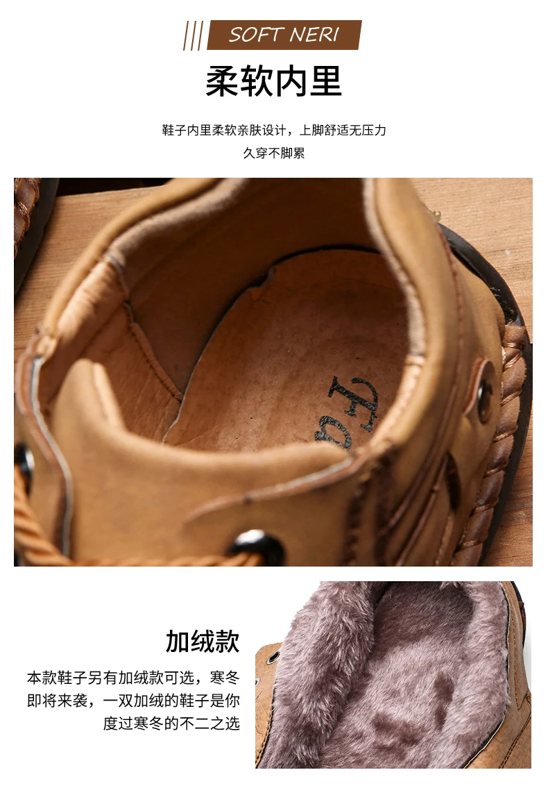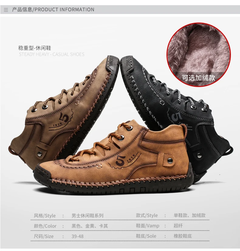 Мужские кожаные ботинки, теплые ботинки ручной работы, для осени и ...
