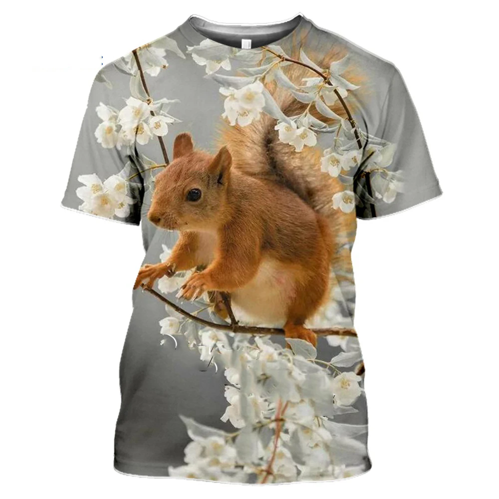 Забавная футболка с 3D-принтом милой белки для мужчин и женщин, Повседневная Свободная футболка в стиле хип-хоп с рисунком животных, Новинка лета 2021